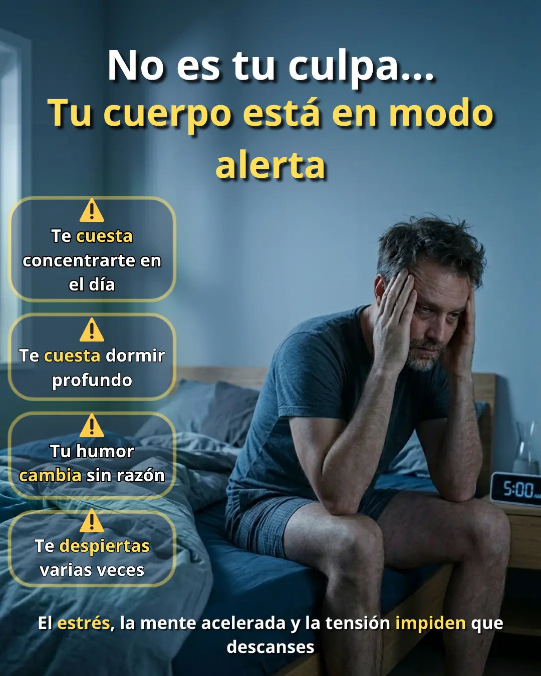 "El estrés del trabajo me tenía despierto hasta las 3am todos los días. Empecé a tomarlo antes de dormir y en dos semanas ya estaba durmiendo 7 horas seguidas. Me siento como otra persona"